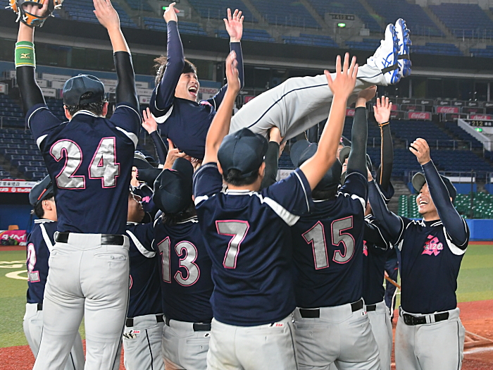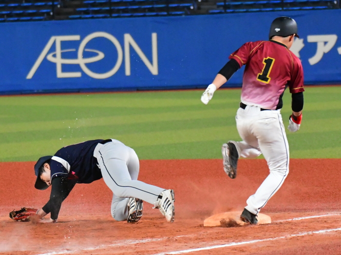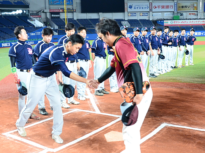 「今日はマリンという大舞台のお蔭で、はじめこそ緊張しましたが、皆いつも以上にパワーが出せた気がします。エラーは計算通り(笑) 欲を言えば久保の前にランナーを出したかったですね。この一週間、仕事中にエクセルでどこでどう人を使うかをずっとやってきたので、全員が守備機会1回と打席を1回ずつ経験させることができ、ホッとしました(笑)」 |