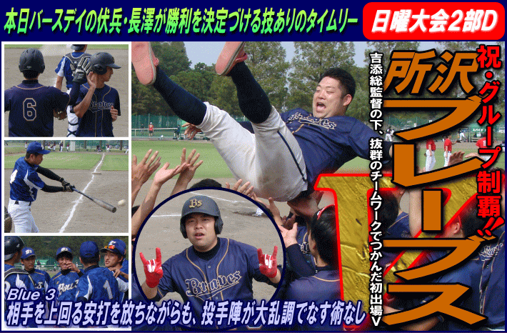 | 所沢ブレーブス(所沢市) | 6 | × | 1 | Blue 3(青梅市) | ||