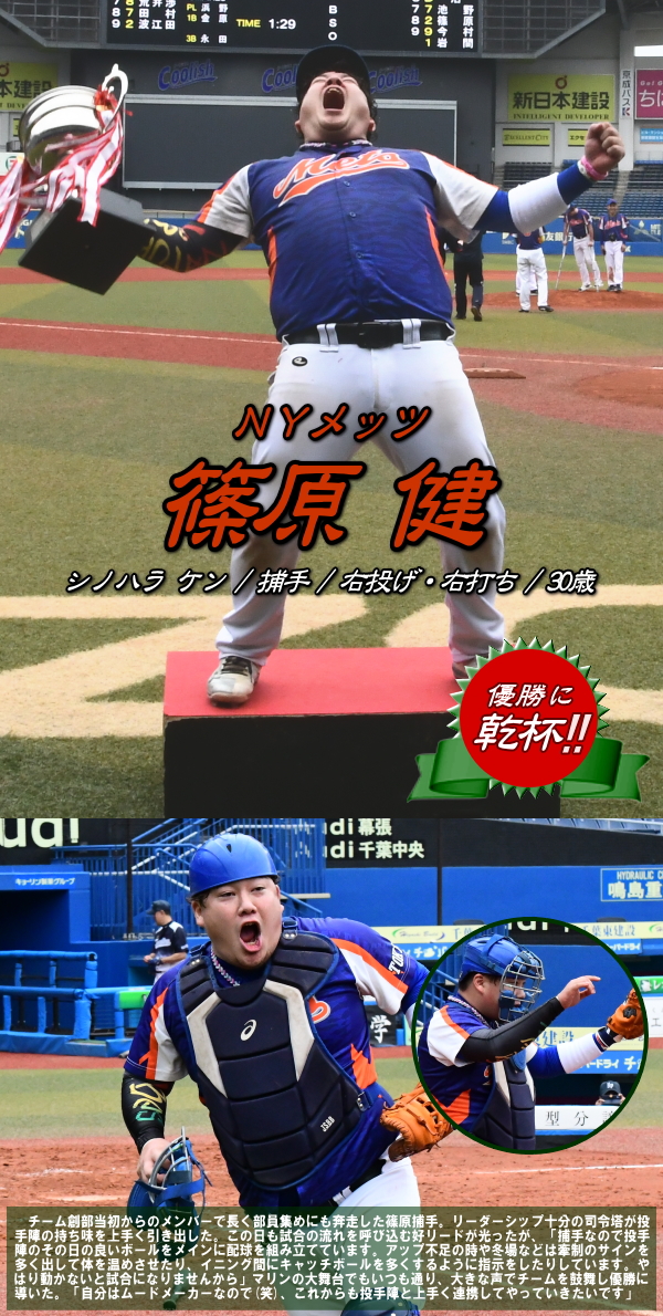 今日は一年間のご褒美として出席率の高いメンバーをスタメンに選びましたが、うちらしい先行逃げ切りの野球ができました。今年の納会は優勝戦のことを肴にして、大いに盛り上がりたいです」 |