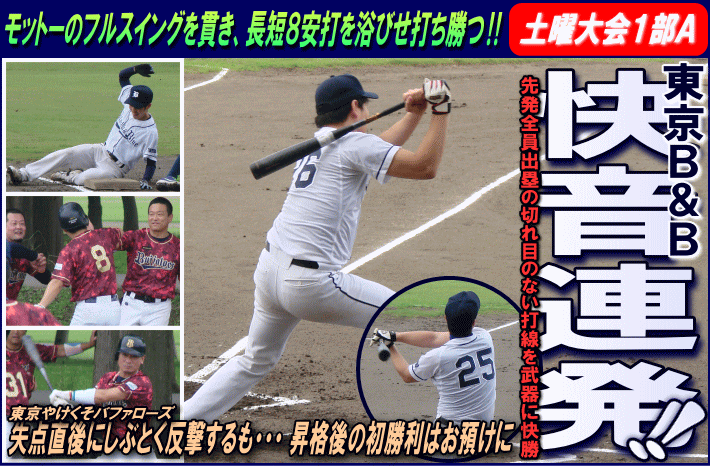 | ▲関口・佐藤・墓越らのタイムリーと岸本の犠飛などで効果的に得点を重ねた東京B&Bが、終始ゲームを支配し逃げ切った。 |