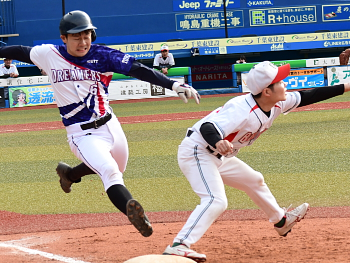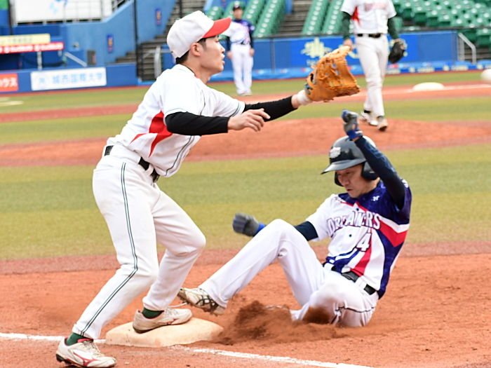 | BLOOD KAYOIは初回、2回と得点圏にランナーを出すものの後続が倒れ惜しくも先制機を逃す。一方の夢みがちドリーマーズも、初回は1死2塁で牽制死、2回は1死1・2塁のチャンスを生かせず無得点に終わる。その後も走者は出すものの決定打が出ず、両チームともに0行進。試合が動いたのは終盤6回だった。夢みがちドリーマーズは1番小川がヒットで出塁すると、次打者の送りバントが相手守備陣の乱れを誘い、この間に俊足・小川が1塁から一気に生還。ついに重い均衡を破った。なおもチャンスで続く3番伊藤がレフトオーバーのタイムリー3ベースを放ち、さらに1点を追加。その後タイムリーエラーでもう1点を加点した。何とか反撃に転じたいBLOOD