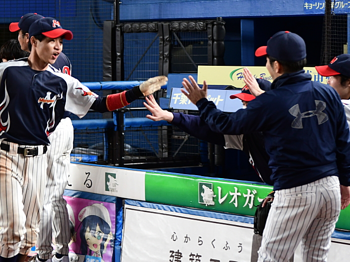 しかし、中沢のタイムリーなどでその後追い上げることが出来て、自分たちの野球はできました。マリンは、外で待機している時には、さほど緊張はしていませんでしたが、グランドに入った途端、ナイター照明の鮮やかさに圧倒されました(笑)