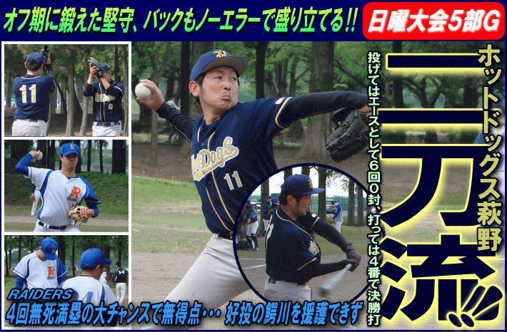| ホットドッグス(戸田市) | 1 | × | 0 | RAIDERS(練馬区) | ||