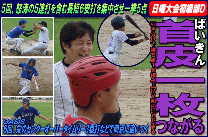 | さしみベースボールクラブ(川崎市) | 8 | × | 1 | 東京BMD(大田区) | ||