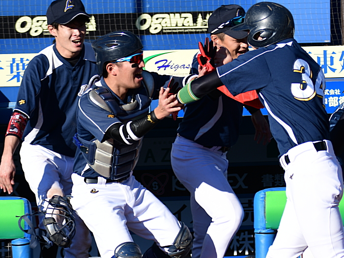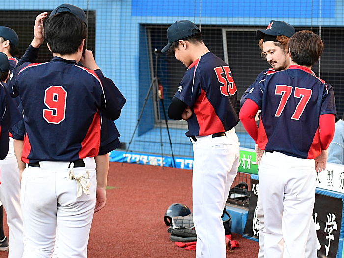 | 「シーズン中はどちらが勝ってもおかしくない試合が続きましたが、何とか逆転勝ちを重ねてきました。今日は最終回に無死満塁のチャンスを作り、手応えがあったのですが、今回はサヨナラ勝ちとはならず残念でした。うちはチャンスには代打攻勢を仕掛けますが、今日の試合ではうまく機能しませんでした。敗因は失点にも絡んだ初回のエラーですかね(笑)。打たれて負けたという感じでは無かったので、そこが悔しいです。しかしみんなが緊張すること無く、マリンを楽しんでくれたので良かったです。ここに来ることが一年間の目標でしたので達成できて良かったです。これからもみんなで切磋琢磨しながら、チーム力をアップしていきます」 |