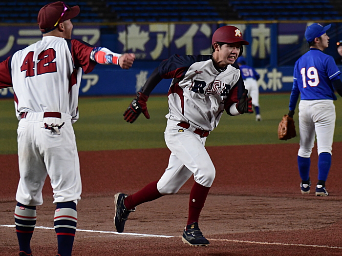 | 「初回に先制を許しましたが想定内でしたので、いつものように打って逆転をすれば良いと思っていました。打線が売りのチームなので、決勝戦でもRSAらしい戦い方ができたと思います。打ち勝つことにこだわってきたチームなので、みんなが気持ちを切らさずにチャンスを作り得点を重ねたことが勝因だと思います。また、スローガンに掲げている全員出場もできたので良かったと思います。これからも兄の野球の知識を全面的に取りいれながら、監督としての役割を務めます。来年は部が上がり、厳しい戦いが続くことが予想されますが、自分達の打ち勝つ野球を貫きたいと思います」 |
