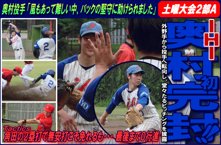 | 「奥村が本当に良く投げてくれました。彼は本来は外野手なんですが、今シーズンはチーム事情でピッチャーとして主戦でやってもらっています。今日は特に制球が抜群でテンポも良かったですね。初回に先制できたことで気持ちも楽になり、ようやく今季初勝利を挙げることができました」 |