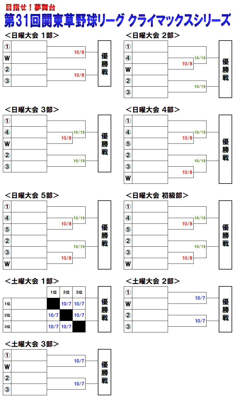 | ※ | クライマックスシリーズは各階級ごとにトーナメント方式で行い、そこを勝ち残った2チームが優勝戦進出となる。 |