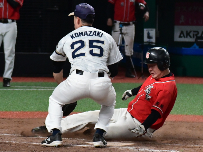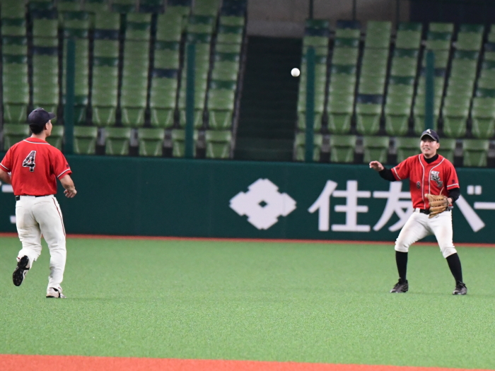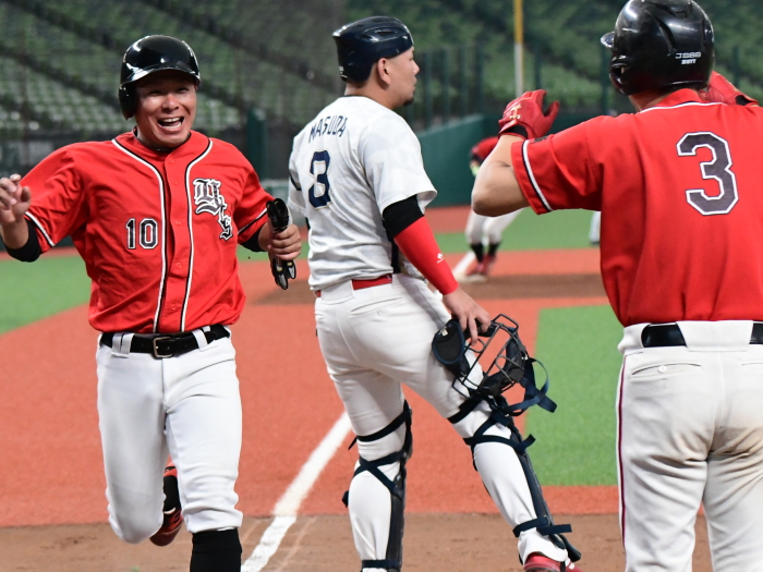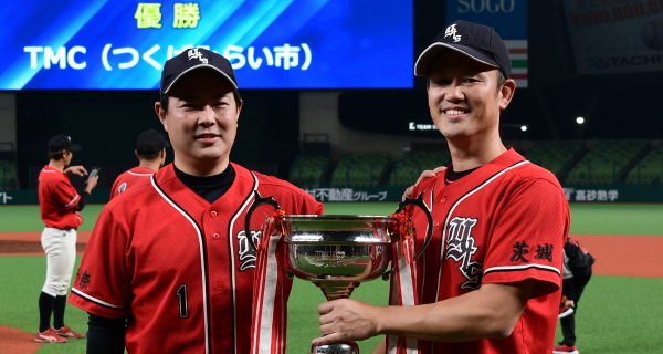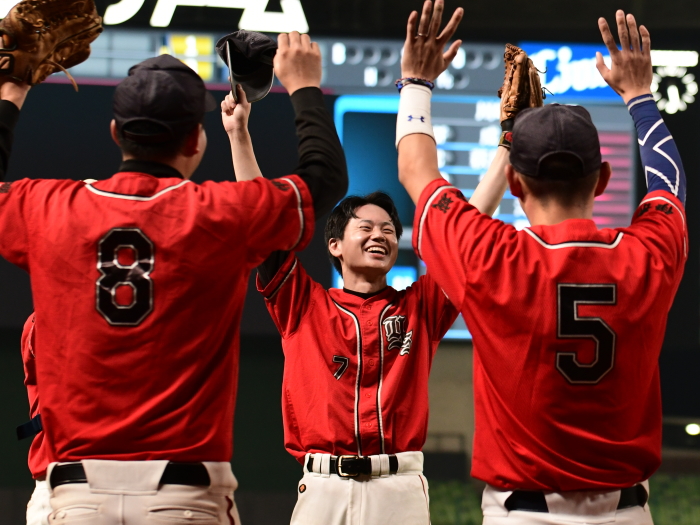 | 「今日はとにかく楽しんでベルーナを満喫しようと試合前に話をしました。プレッシャーを感じることも無くみんなが野球を楽しんでいましたね。 勝因としては初回に2点を先制できたことで試合を優位に進められたことだと思います。エースの古谷も相変わらず安定した投球内容で四死球も1つでしたので、野手陣がリズム良く守れたことも大きかったと思います。ここまで来た道のりは人数集めなど苦しかったこともありましたが、みんなでカバーをしながらようやくたどり着けました。優勝できて嬉しいです。今後は今日怪我のために出場ができなかった山口選手のためにも、もう一度このような素晴らしい球場で試合がしたいですね」 |