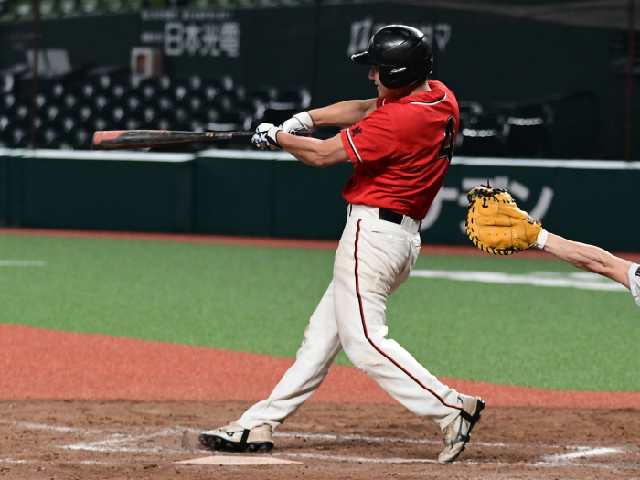 | 「優勝するためにここまでの全試合、みんなで声を出し合って来たので負けて本当に悔しいです。今日の試合も勝つためにベストメンバーで臨みましたし、お祭りでは無く1年間の締めくくりの意味でも優勝で終わりたかったです。すべては打てなかったのが敗因ですね。チャンスは作りましたがあと1本が出ませんでした。エースの駒アは一人で良く投げ切ってくれました。彼のためにももう少し打線が奮起したかったのですが、相手の投手が一枚上手でした。来シーズンこそは優勝をするために、みんなで切磋琢磨して、上の舞台でも戦いたいと思います。応援をしていただいた方には感謝の気持ちで一杯です」 |