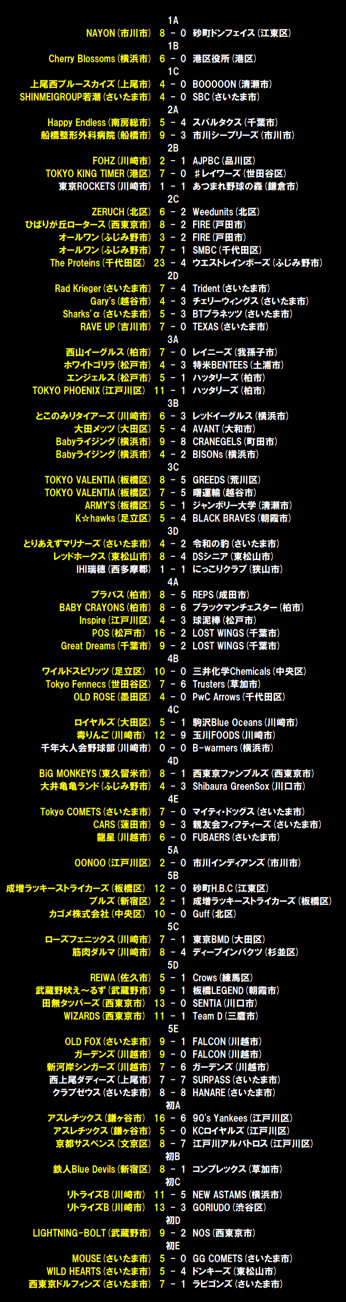 | 8月18日(日) 日曜大会 5部E |