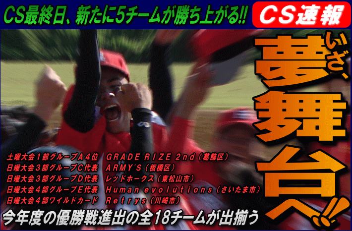 | GRADE RIZE 2nd(4位枠) | 6 | × | 2 | BBファイターズ(1位枠) | ||