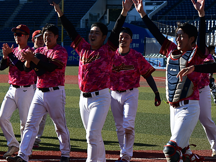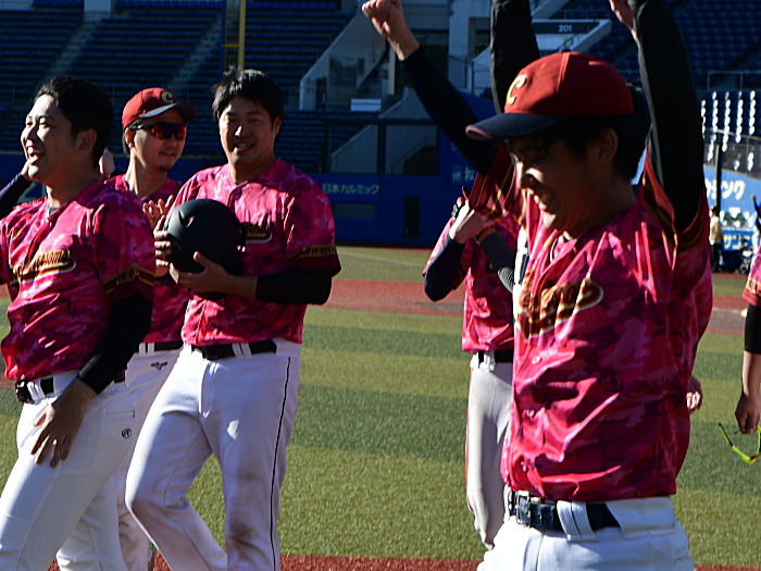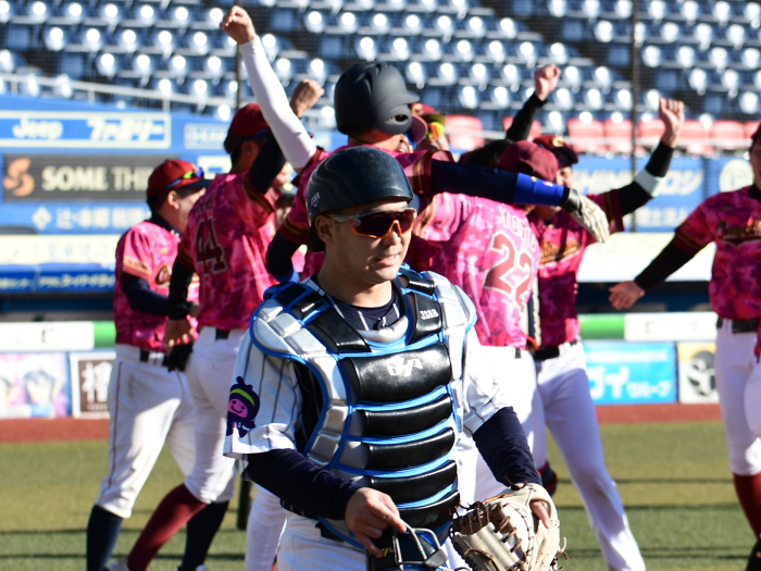 「勝った瞬間は人目もはばからずに男泣きをしました。6年越しで優勝することができたので本当に嬉しいです。上尾西ブルースカイズさんは投打にバランスの取れた強いチームです。うちが勝つとしたら、1巡目、2巡目、3巡目と段々と目を慣らして、終盤にロースコアの展開ならば勝機があると思っていました。タイブレークでは途中からマウンドに上がった吉田が2者連続三振と圧巻の投球をしてくれました。青山の初球エンドランのサインはみんなで決めたサインですが、彼は打撃不振で相当に苦しんでいたので結果が出て良かったです。一年の締めくくりの今日のゲームで関東草野球リーグの頂点に昇りつめられたことは、みんなにとって大変殊勲なことだと思います。ありがとうございました」
