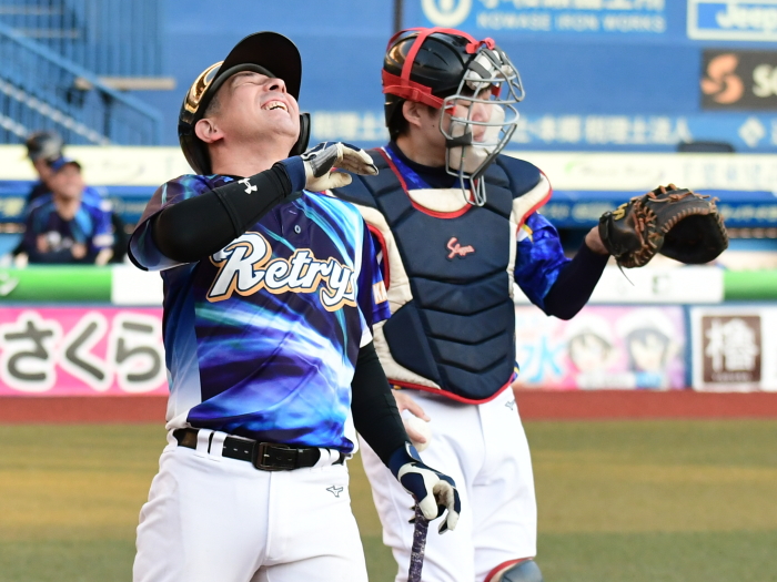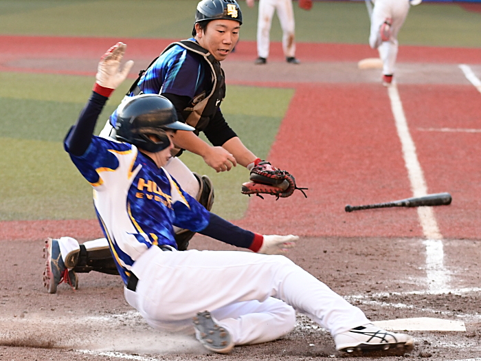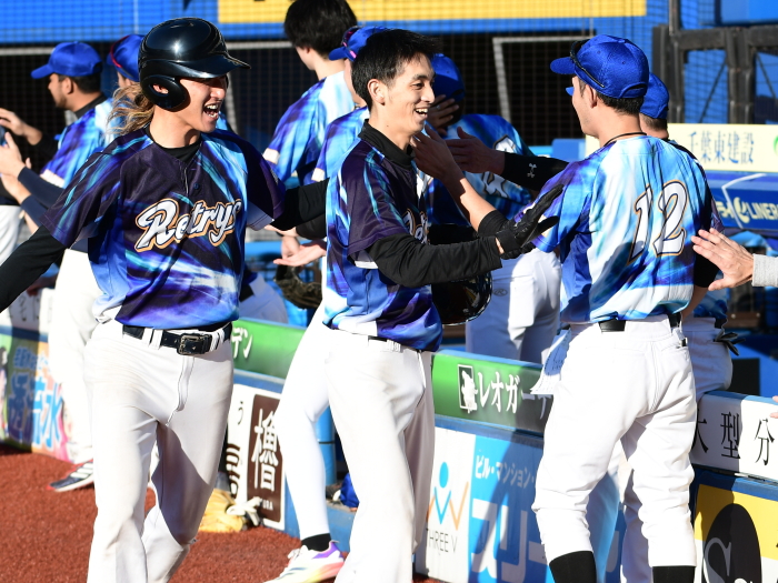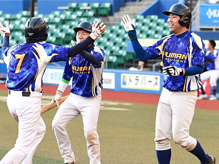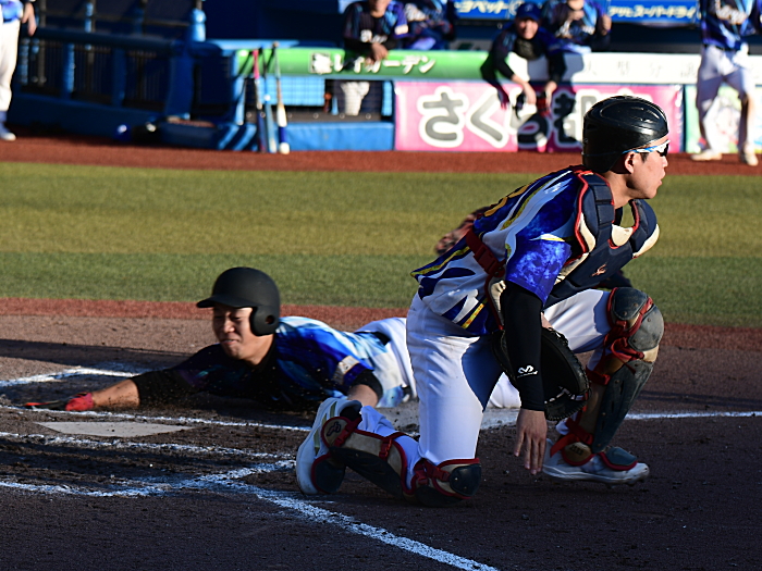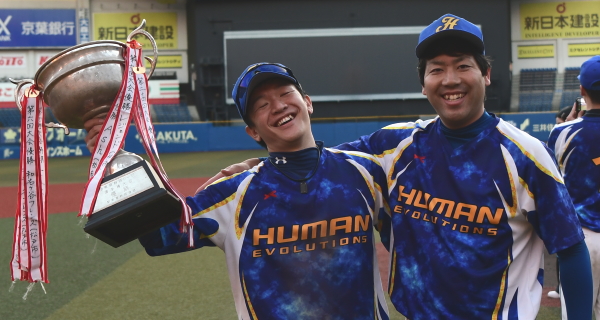 | Retrysは2回、4番中村がヒットで出塁するとその後2盗を決めて無死2塁のチャンスを作る。ここで迎えた5番川崎がライト前にタイムリーヒットを放ち1点を先制。Retrysはその後に内野ゴロの間に1点を追加し、なおも連打で1死1、2塁とするとこの好機に9番田那辺がセンターオーバーのランニング3ランホームランを放ちこの回計5点を奪うビッグイニングを作る。5点を追うHuman evolutionsの反撃は直後の3回。8番林田がレフト前ヒット、1番藤田の2塁打などで2死1、3塁のチャンスを作ると、3番橋のタイムリーヒットと失策絡みからまず2点を返す。さらにその後も相手失策絡みからもう1点を追加し3−5と2点差に詰め寄る。追い上げられ追加点を奪いたいRetrysは4回、1死から1番長利、2番山内が連続安打で出塁すると、3番久保のセンター前タイムリーや失策絡みで2点を奪い7−3と再びリードを広げる。終盤に向け少しでも点差を詰めておきたいHuman evolutionsは5回、この回先頭の1番藤田がマリンスタジアムのライトスタンドへ叩き込む豪快なソロホームランを放ち1点を返す。そして勢いづき迎えた最終の7回、Human evolutionsは8番島田のヒットや四球などで1死1、3塁とすると、2番岩崎がセンターオーバーの2点タイムリー3塁打を放ち、6−7と1点差に詰め寄る。その後、走者を3塁に置き迎えた3番新田の放った打球が内野のフィルダースチョイスを誘い3塁走者がホームイン。最終回の土壇場で7−7の同点に追いつく。Human evolutionsはさらに2死後、走者を2塁に置き5番中井の当たりはセカンドゴロ。チェンジかと思われたが全力疾走と気迫のヘッドスライディングで相手の守乱を誘い、その間に2塁走者がホームイン。8−7とついに逆転に成功する。結局試合はその裏のRetrysの反撃を抑えたHuman evolutionsが驚異的な大逆転で制した。 |