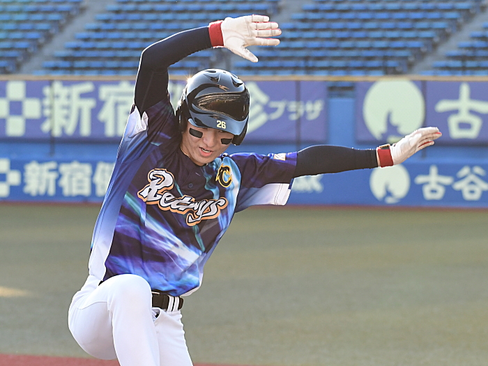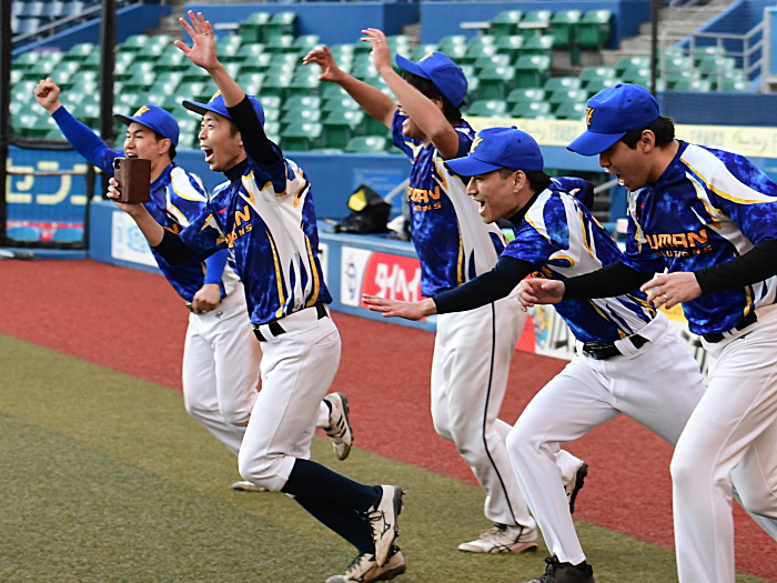 | 「勝ちに拘ること無く、楽しく野球をしようと試合前にみんなには言いましたが残念の一言です(笑)。しかし普段から投げている3投手がマリンでも投げて負けたので仕方が無いと思います。敗因をあえて挙げるとしたらやはり自分が試合に出たことですかね。そこから流れが変わった感じがします(笑)。今年はクライマックスシリーズ、優勝戦と戦えたので一年間が長く感じました。今日の優勝戦はチームにとって良い記念になると思います。来年は2部に上がりますが、これからもこのメンバーで楽しく野球がしたいですね」 |