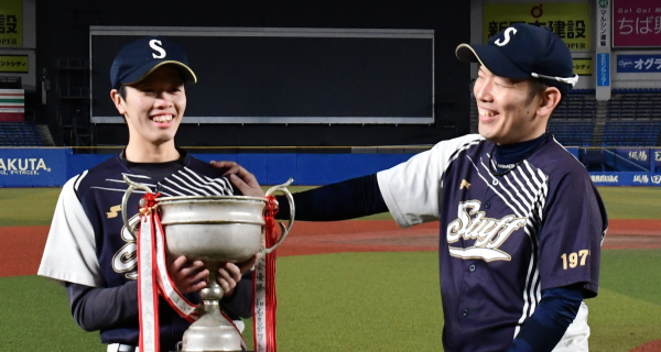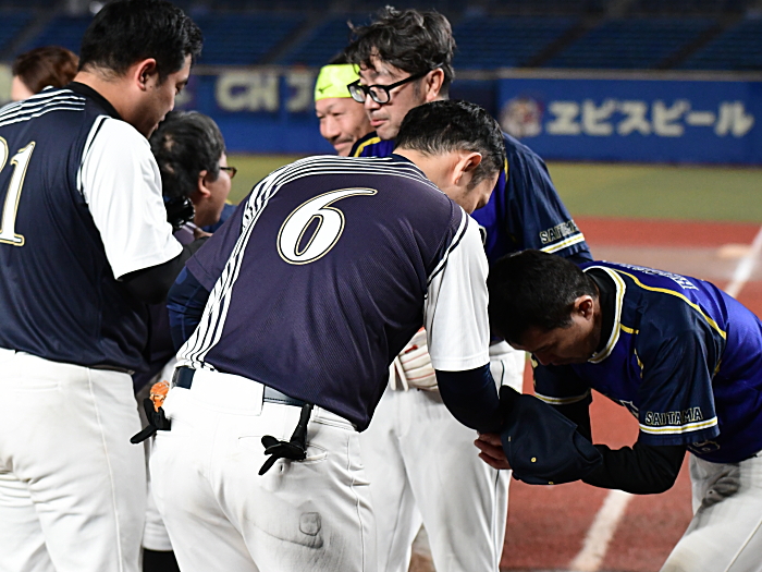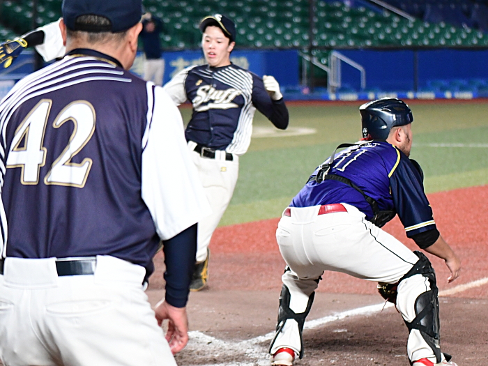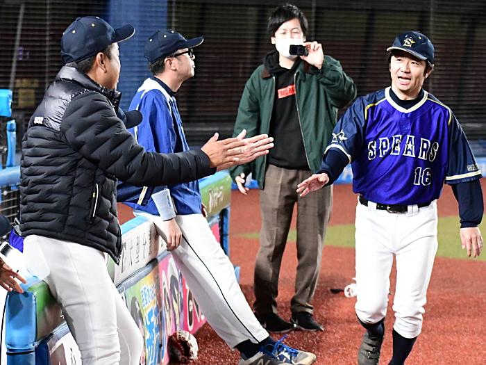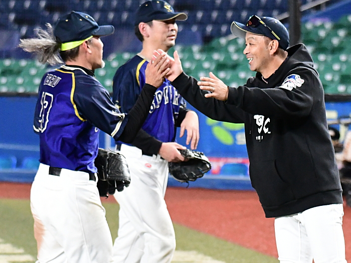 | 「今日は初回に2点を先取されましたが、その後もみんなが強い気持ちで試合を作ってくれたので最後まで締まった試合が出来ました。5回の鈴木(拓)の好走塁がチームに勢いをつけてくれました。あの5回で同点に追いつけたのは大きかったと思います。自分自身も代打で出場して、タイムリーが打てて本当に良い思い出になりました。うちは創部が1977年と伝統があるチームなのですが、すでに還暦を越えている栗原、斉藤も現役で若手に負けないくらいの打撃をします。監督業は大変なところも多々ありますが、これからもチームのために指揮を執りたいと思います。またチームの灯を絶やさずに、若い世代にもうちの野球を伝えていきたいと思います」 |