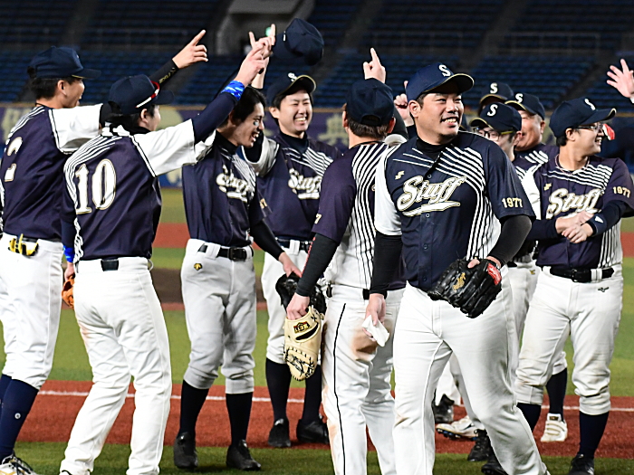 | 「負けましたがわたし以外の選手は全員出場できたので、みんな満足していると思います。今日の試合も少ないチャンスの中でも得点が奪えて、7回まで互角に戦えたので良かったです。6回にはうちのミスから逆転を許してしまい、試合にも負けてしまいましたが、エラーも織り込み済みでそれを含めて良い試合ができました(笑)。今年はエースの高橋が非常に安定した投球でチームを最後まで支えてくれました。来年は今よりも盗塁などの走力に力を入れます。また若手の新メンバーも募集して、チームを強くしていきたいと思います」 |