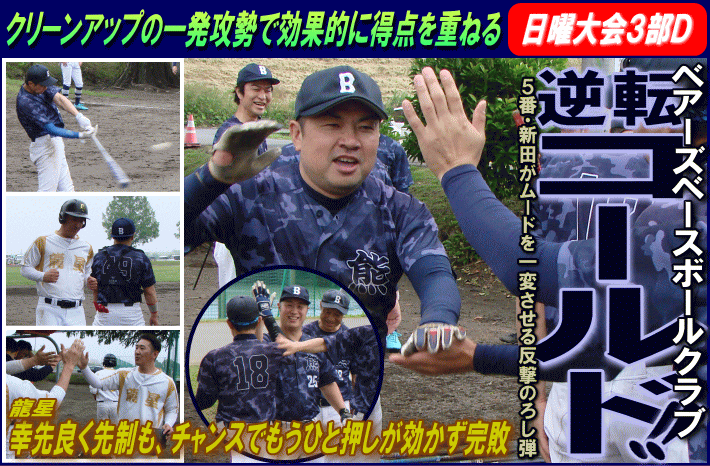 | 先手を取ったのは龍星。初回、連打で無死1・3塁から2盗を仕掛けるとこれが送球ミスを誘い1点を先制した。追うベアーズベースボールクラブの反撃は2回。この回先頭の5番・新田がレフトオーバーの特大弾を放ち同点とすると、さらに振り逃げと死球で無死1・2塁から次打者の送りバントが悪投を誘い勝ち越しに成功した。勢いに乗ったベアーズベースボールクラブは3回には3番・田中のタイムリー2ベースと犠飛で追加点。さらに4回には4番・中尾の3ランなどで一挙4得点。6回にも3番・田中のソロ弾などでリードを広げ勝負を決めた。一方、敗れた龍星は初回の無死1・3塁、4回にも連打で無死2・3塁など度々大きなチャンスを作るもいずれも1点止まりで、あとひと押しが効かなかった。 |