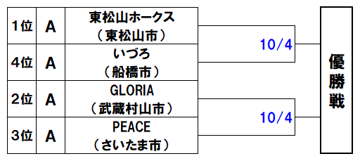 | 近年の土曜大会1部のCSは常連チームによる覇権争いが続いていたが、今年はPEACE(さいたま市)以外のチームが初出場とフレッシュな顔ぶれとなった。レギュラーシーズン1位通過の東松山ホークス(東松山市)は昨年6位、一昨年5位とあと一歩のところで逃し続けていたCSにようやく初登場。総合力が高く優勝候補の一角だ。対するいずろ(船橋市)は好投手・安藤を擁する。ベテラン浅野が引っ張る守備も固く、1点を争う好勝負になりそうだ。大会初出場でCSに駒を進めたGLORIA(武蔵村山市)はレベルの高い最上位クラスで1試合平均5得点以上をたたき出した打線が好調。PEACE(さいたま市)は4年連続CS出場とこの部でのキャリア、実績は№1。川畑・河野・藤本ら経験が豊富で多彩な投手陣を擁する。打線も勝負強さが光る4番・小島を中心に切れ目がない。 |