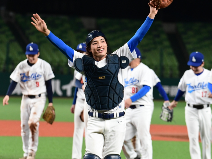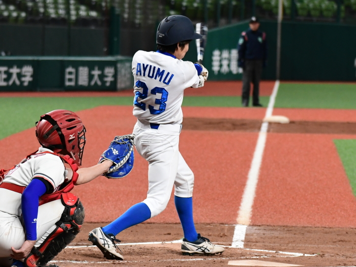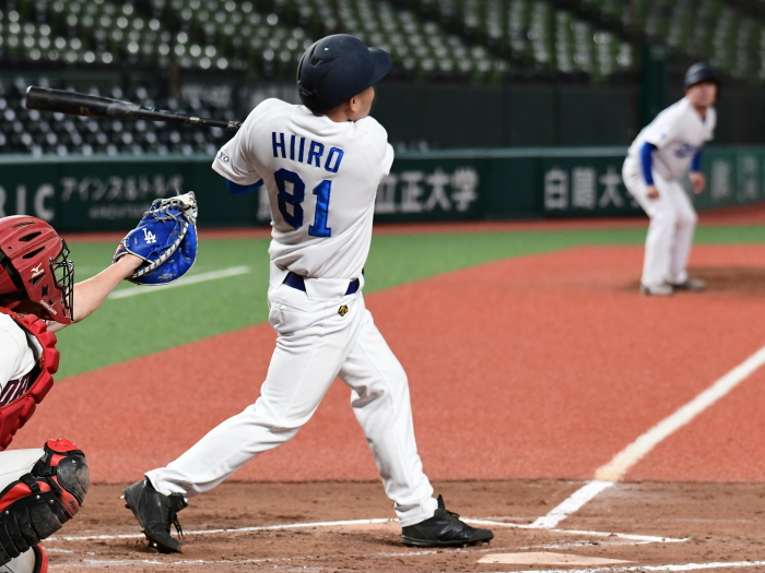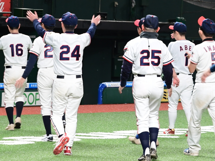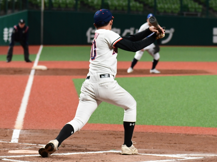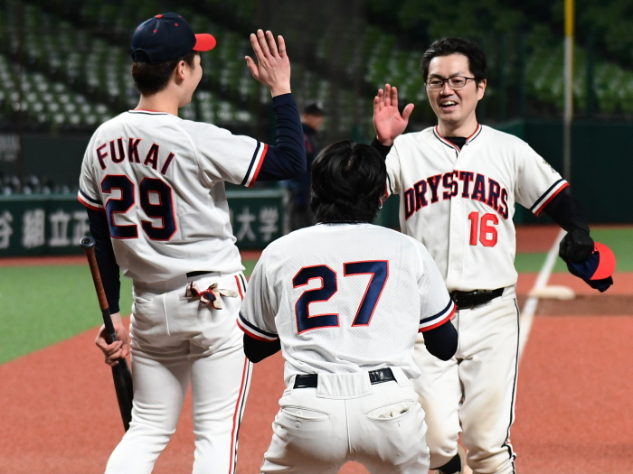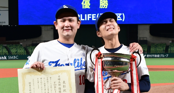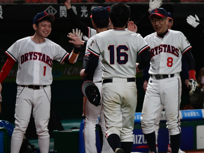| FORLIFEは1回表、先頭の1番・須藤が初球をいきなりレフトへ本塁打を放ち1点を先制。さらに次打者が内野失策で出塁すると2塁へ盗塁を決め無死2塁と追加点のチャンスを作る。1死後迎えた4番・米望(正)がセンター前にタイムリーヒットを放ちこの回計2点を先制する。追うドライスターズは直後の1回裏にすぐさま反撃する。先頭の竹内(駿)が四球で出塁すると内野ゴロで2塁へ進んだ後、3番・輿水のライトへの打球が失策を誘いまず1点を返す。さらにその後内野失策で1・2塁とした後、5番・山本の内野安打の間に2塁走者が生還し2−2の同点に追い付く。その後2死となるもここで迎えた7番・伊藤がセンターの頭上を越えるランニングホームランを放ち3点を追加。この回計5点を挙げドライスターズが一気に試合をひっくり返した。追うFORLIFEの反撃は3回。四球とヒット、盗塁で2死ながら2・3塁とした後、迎えた8番・日色がレフト前に2点タイムリーヒットを放ち4−5と1点差に詰め寄る。FORLIFEは4回には2つの失策の間に1点を返し同点とした後、続く5回には2死2塁から1番・須藤がセンターオーバーのタイムリー2塁打を放ち1点を勝ち越す。さらにその後四球と内野悪送球の間に2点を追加しこの回計3点。8−5と逆転に成功した。試合は結局FORLIFEがこのリードを最後まで守り切った。 |