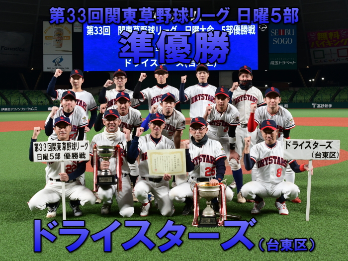 | 「緊張から今日の試合では守備面が今年一年の試合では一番酷かったのですが、打ち勝って優勝することができました。ドライスターズさんとはグループ戦で対戦をしていてチーム力が高いと知っていました。その時は1点差で負けたので今回はリベンジが出来ました。クライマックスの2回戦ではわたしが不在ながら、代表の柳(諒)を入れて9人での戦いでしたが、厳しいゲームに勝ってくれました。このような舞台を用意してもらったメンバーには感謝したいです。来年も打撃に力を入れて、さらに得点が奪える打線を作りたいと思います」 |