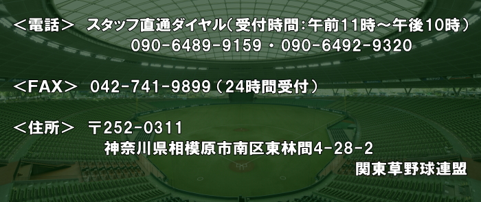 こちらのホームページおよび関東草野球リーグに関するお問い合わせは、下記までお願いいたします。